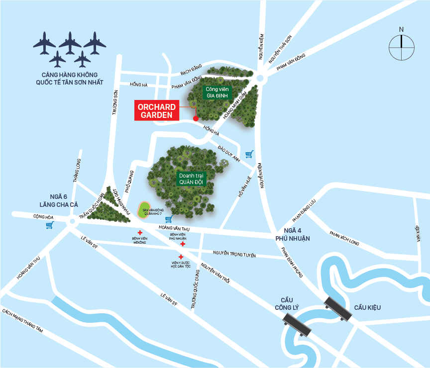 Orchard Garden sở hữu vị trí giao thông vô cùng thuận tiện, kết nối liền kề với sân bay Tân Sơn Nhất và đại lộ Phạm Văn Đồng – tuyến giao thông huyết mạch của các quận Tân Bình, Phú Nhuận, Bình Thạnh, Thủ Đức. Đặc biệt, dự án nằm ngay sát công viên Gia Định – nơi được xem là “lá phổi xanh” của thành phố, hứa hẹn sẽ đem đến một không gian sống trong lành và yên tĩnh hiếm có ngay tại trung tâm thành phố.